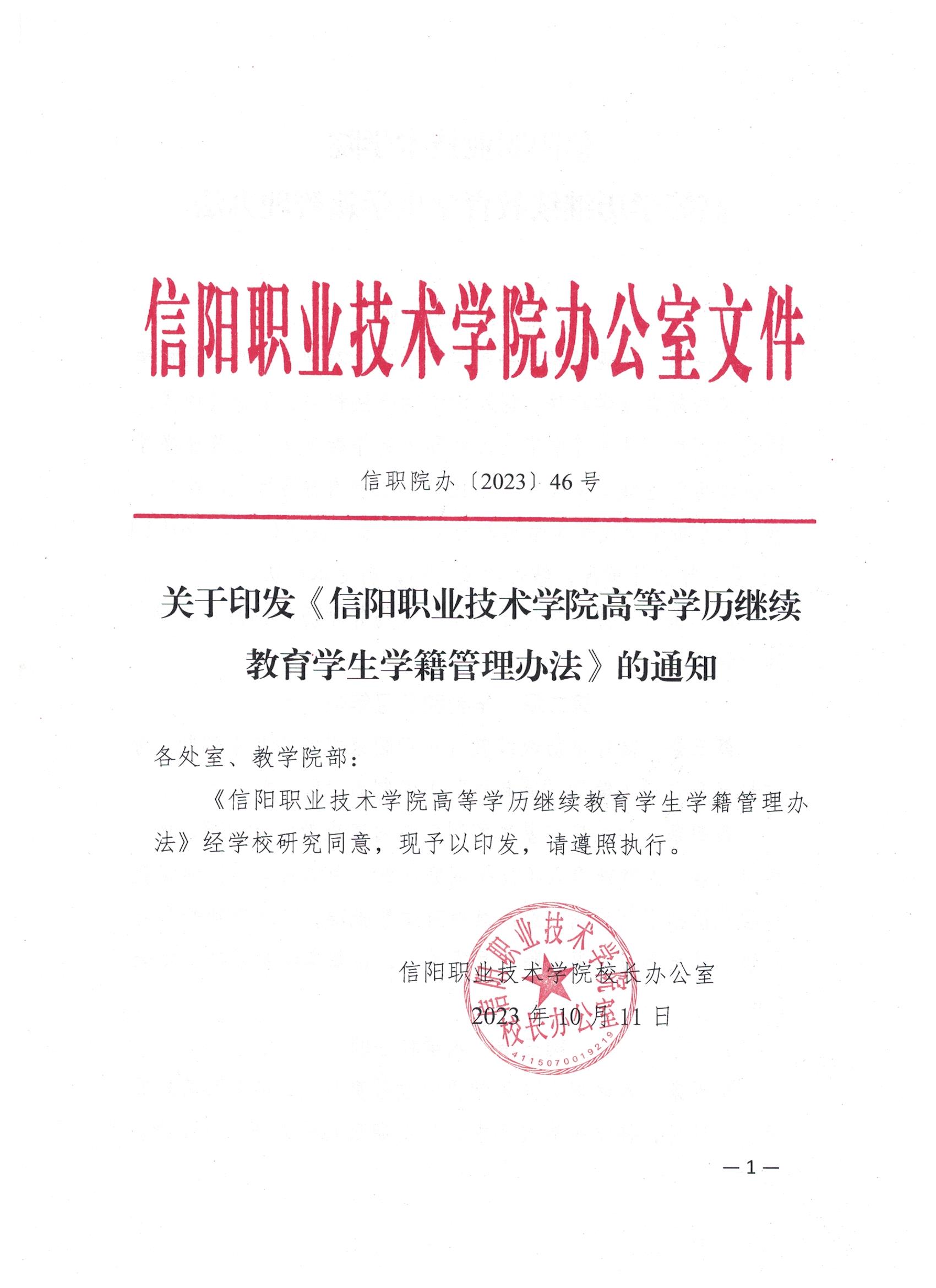 信阳职业技术学院高等学历继续教育学籍学历管理办法.pdf