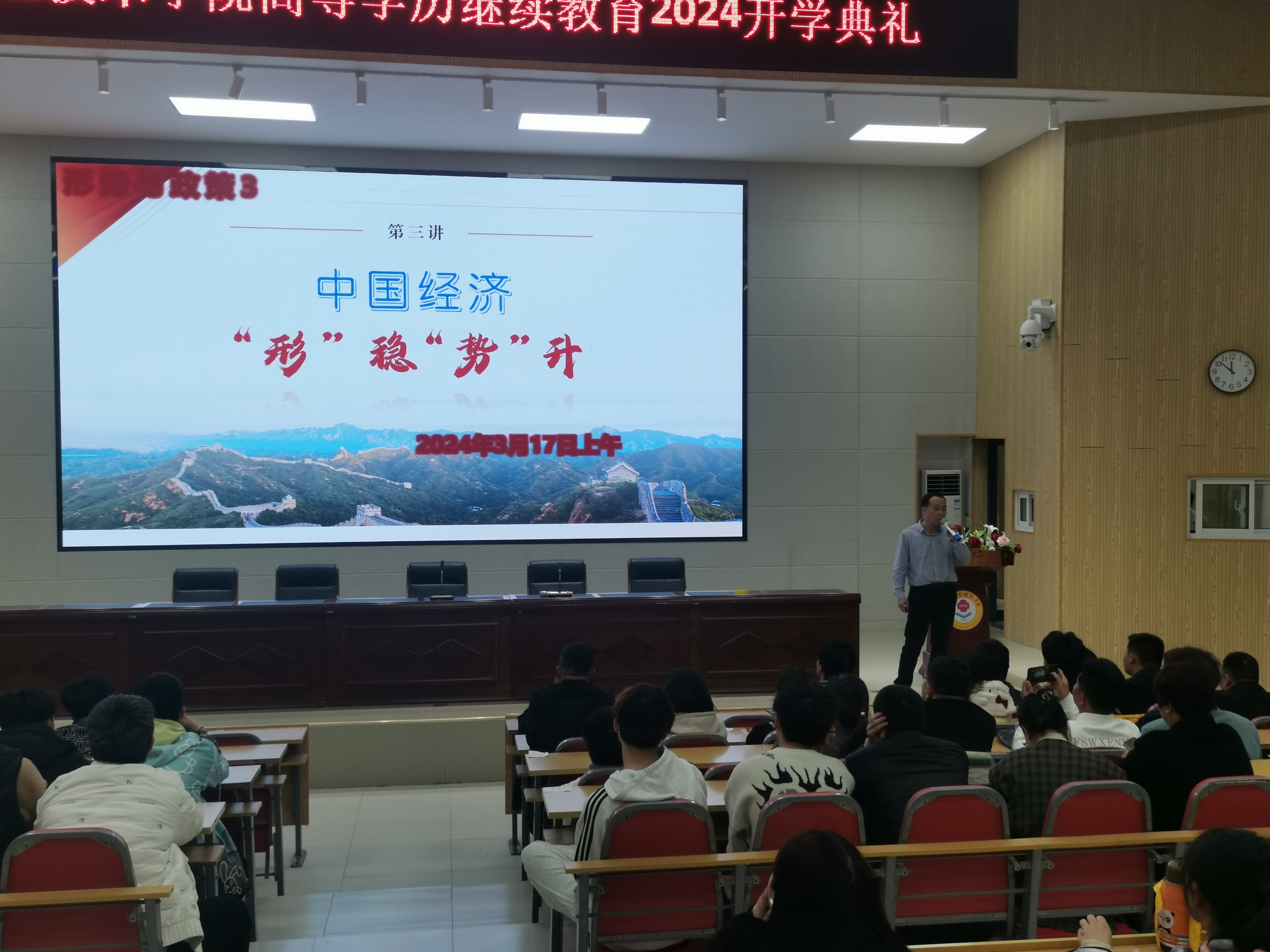 入学教育后,我校马克思主义学院部分老师进行了“形式与政策”课的面授。此次学员入校安排三天,按照教学计划集中面授思政理论课。