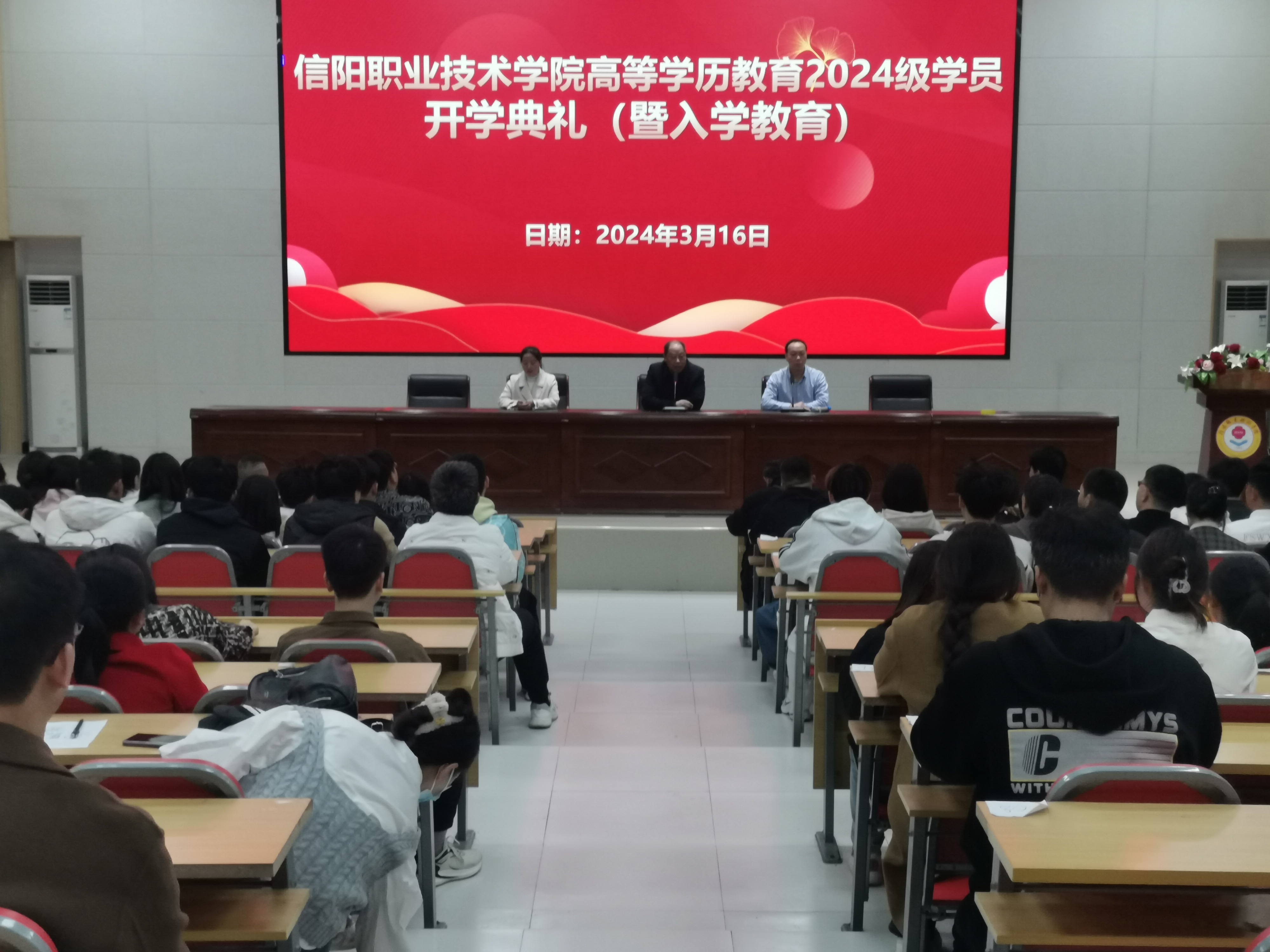 3月16日上午10时,信阳职业技术学院2024级学员开学典礼在医学院行知讲堂隆重进行,来自省内18个地市共计200多名学员参加开学典礼。色九九内射一区院长柯楠出席开学典礼并讲话。
