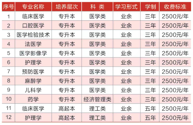 3.通过全国成人考试录取的学生,培养期3年,每生每年交纳学费2500元至我校财务处,我校将一定比例工作经费返还至合作单位。未被录取的培训基地学员暂不交费,待通过全国成人考试录取后,按照我校规定交纳学费,纳入培养计划。