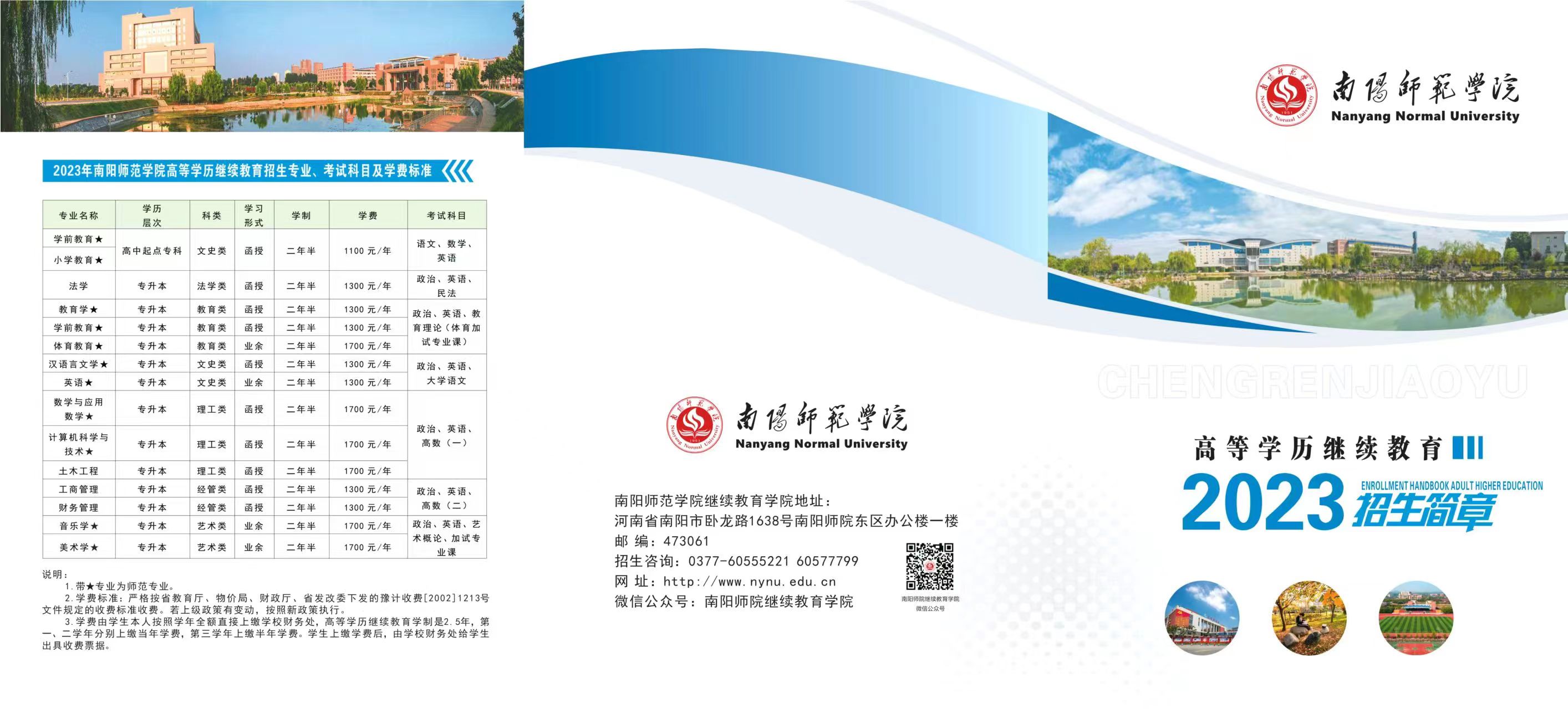 信阳职业技术学院教学点南阳师范学院高等学历继续教育2023年招生简章