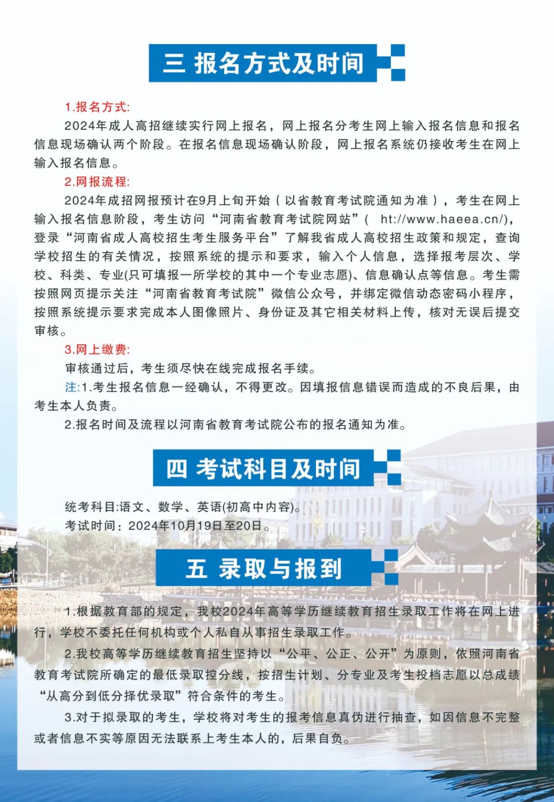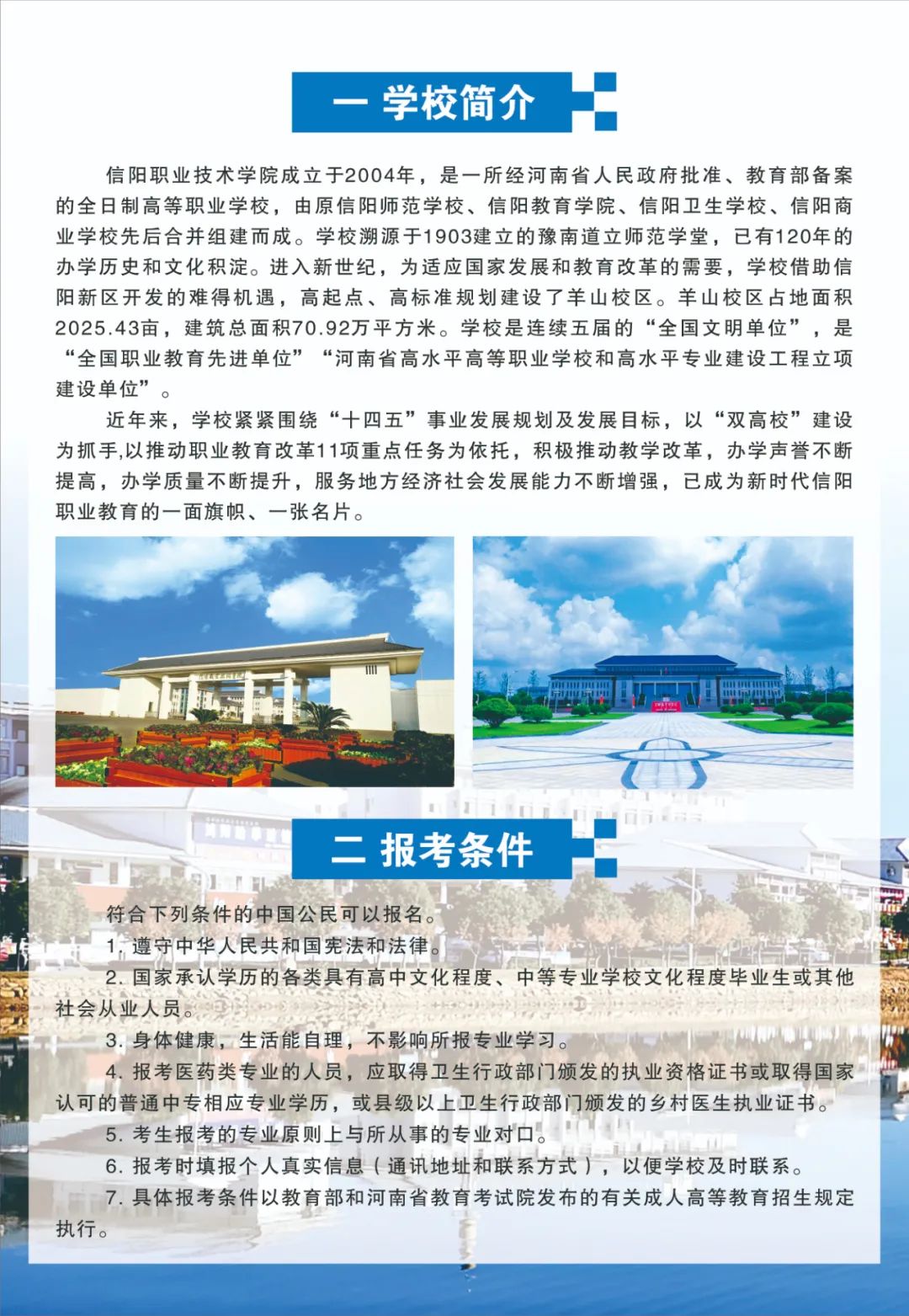 信阳职业技术学院2024年成人高等教育(专科)招生简章